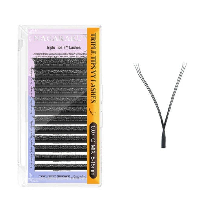 Extensiile de gene Nagaraku Triple Tips YY sunt fabricate din fibră PBT de calitate superioară, imitând părul de nurcă prin flexibilitate, finețe și luciu natural. Buchețelele premade îți ușurează munca și reduc timpul de aplicare, oferind un rezultat elegant și de durată.
