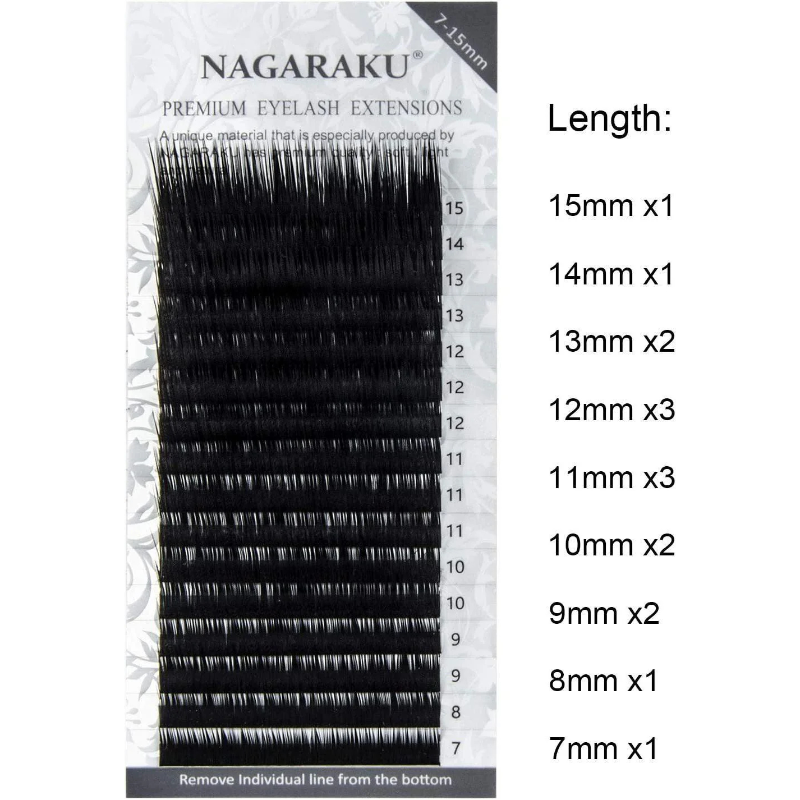 Extensiile de gene Nagaraku, fabricate din fibră PBT de calitate superioară, sunt alegerea perfectă pentru un look natural și elegant. Ușoare, rezistente și cu o flexibilitate remarcabilă, aceste gene oferă un luciu natural și un rezultat similar celor din păr de nurcă, adăugând un farmec subtil și durabil privirii.