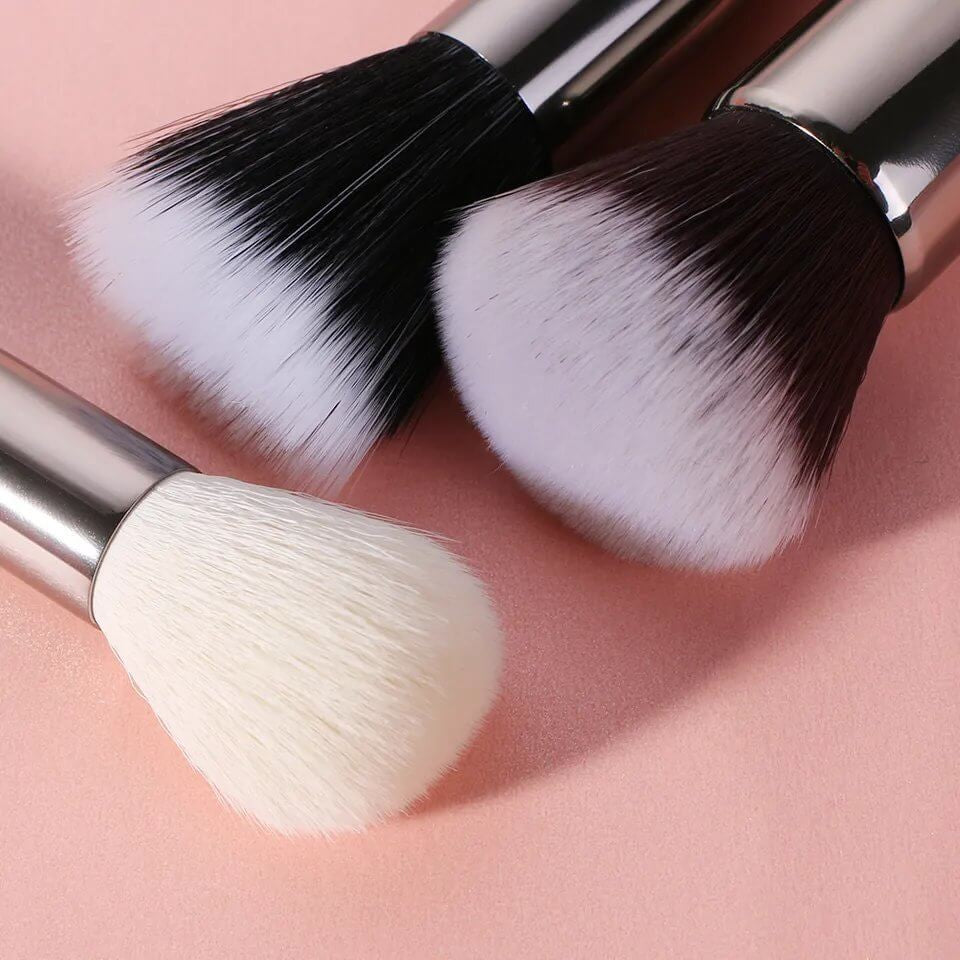 ✅ Set profesional complet cu 11 pensule multifuncționale, concepute pentru aplicarea produselor pudră, cremoase sau lichide. Perii sunt confecționați dintr-o combinație de păr natural și fibre sintetice premium, extrem de moi și rezistenți, pentru un blending fin și aplicare uniformă.
