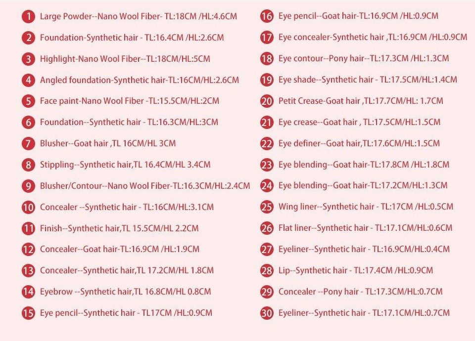 ✅ Păr natural + păr sintetic de înaltă calitate, selectat special pentru fiecare pensulă, asigurând o aplicare uniformă, controlată și delicată pe piele.